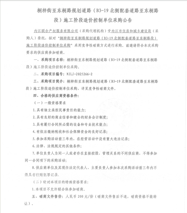 桐梓街至東桐路規(guī)劃道路(B3-19北側(cè)配套道路至東桐路段)施工階段造價(jià)控制單位采購(gòu)公告